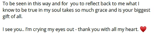And today I feel, after our session, I feel like I have a much brighter and clearer concept of the energy of this space and what I'm creating and I feel like I was able to flow and receive my ideas even as we were talking back and forth as well.
