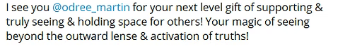 I had the beautiful gift of receiving a fueling session from Odree and she is such a gifted intuitive that shares from such a compassionate, caring and thoughtful place! She brings in an abundance of tools to support you and shared such beautiful perspectives that allowed me to integrate the wisdom from the call into my business, with grace and groundedness. Her work goes beyond the call as well, as she shares an in depth reading and integration practice post call to really help you anchor in the breakthroughs and revelations you had on the call. I would recommend her to anyone who’s seeking to receive intuitive guidance from an incredibly kind hearted, loving soul who will support you in expanding your perspectives and possibilities!!